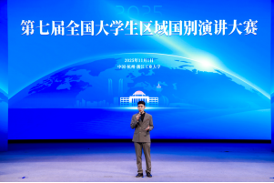 11月2日,由教育部国别和区域研究工作秘书处、高校区域国别学人才培养与学科建设联盟(高盟)等单位联合主办的“第七届全国大学生区域国别演讲大赛”在浙江工业大学举办。本次大赛作为高盟第七届年会的配套活动,覆盖面广,影响力强,受到人民日报,新华社等多家主流媒体的报告。经过紧张激烈的初赛、复赛,最终有28位选手晋级到决赛,决赛采取现场抽签和评委随机提问相结合的方式进行。我院2024级国际政治学生弯靖骅(指导教师王齐超)凭借其扎实的区域国别理论与实践知识和现场应变能力,荣获三等奖,这也是我校学生首次获得该赛事奖项。